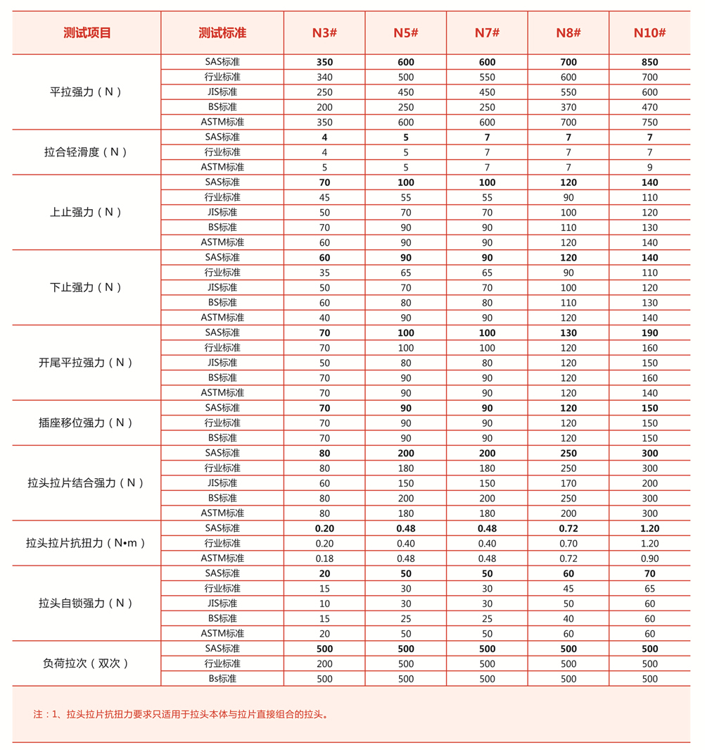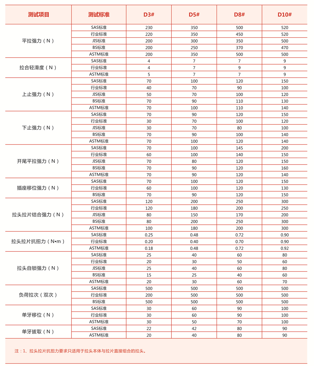 金屬拉鏈物理強度標準